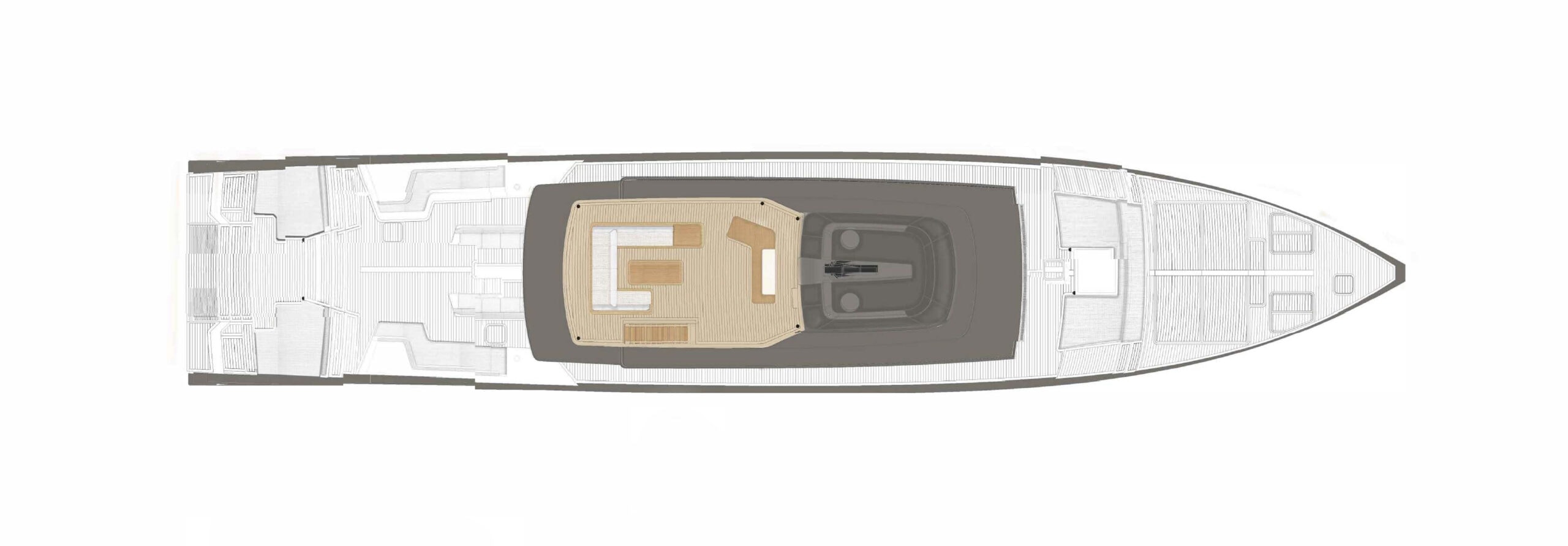 SAN’s interiors reflect a refined approach to luxury, using just 15 hand-selected materials including teak, stained oak, eucalyptus and tan leather. The craftsmanship is subtle yet exquisite—from butterfly joints in the woodwork to saddle-stitched leather detailing. Designed in close collaboration with her visionary owner, every element is intentional and personal, down to bespoke mirrored panels and compound-curved glazing. The result is a warm, sophisticated space that quietly celebrates precision and restraint.